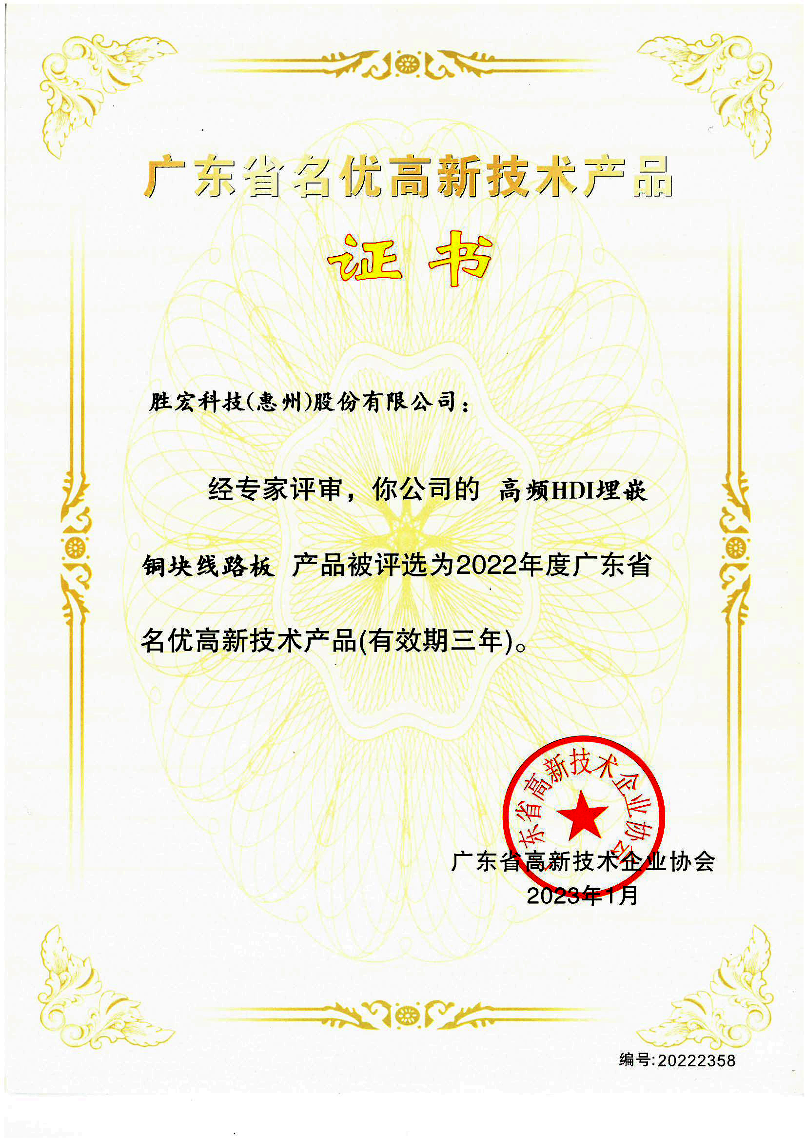 “Advanced High-Frequency PCB” Reputable High-Tech Product Certificate