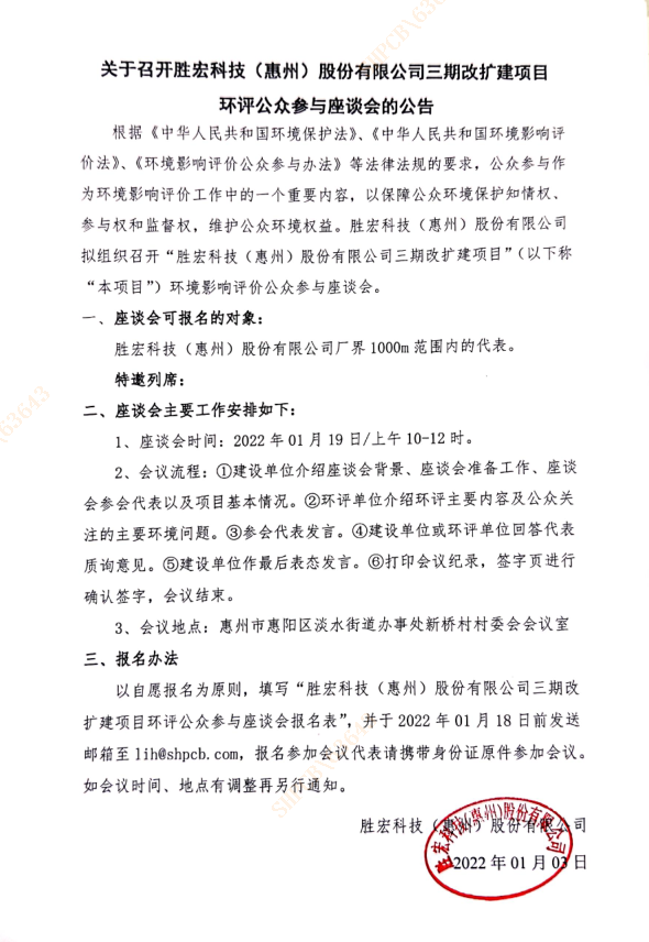 关于召开金年会(集团)智能科技股份有限公司三期改扩建项目环评公众参与座谈会的公告